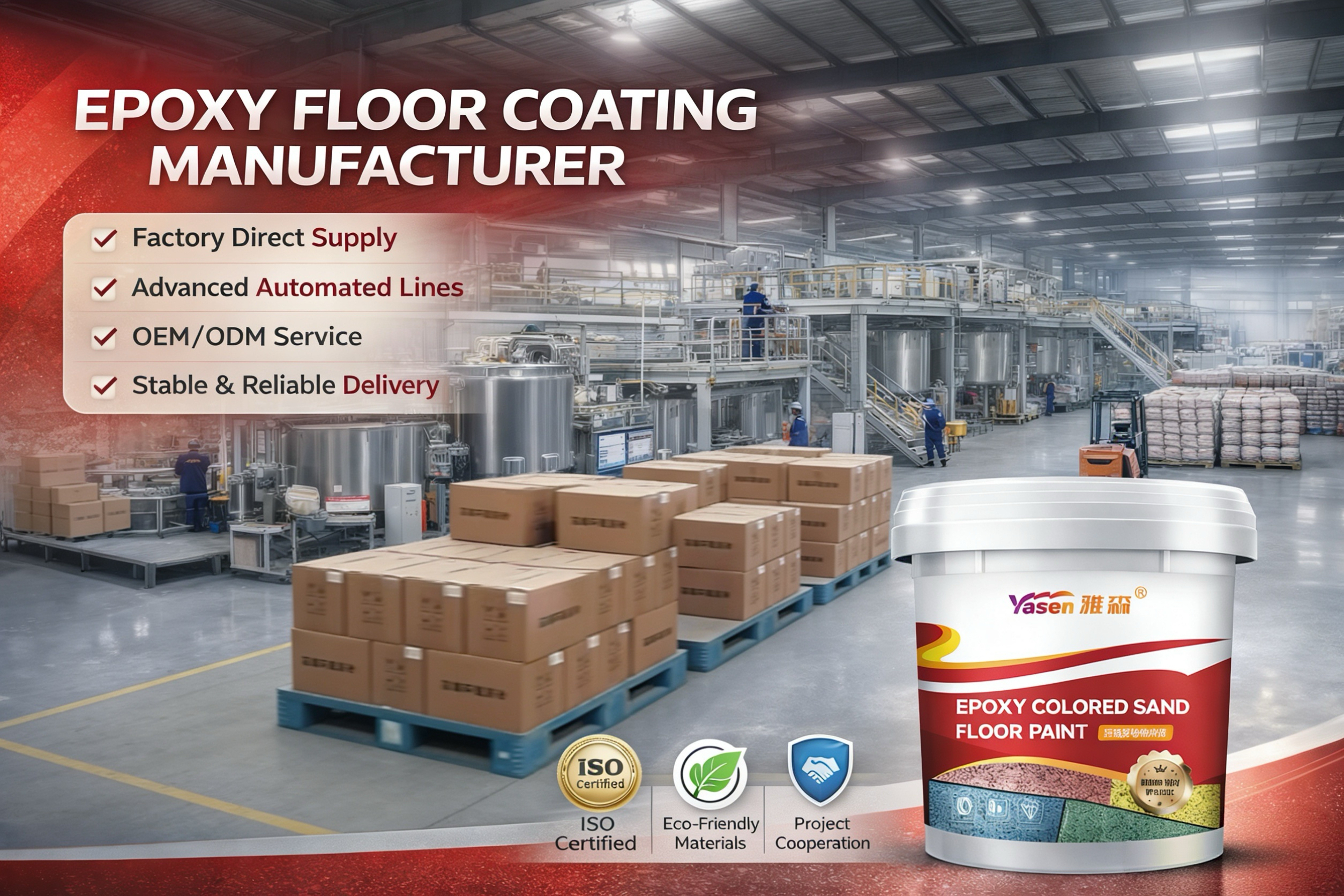 Yasen Coating Technology Co., Ltd. is a leading manufacturer of advanced floor coating systems, specializing in the development and production of high-performance epoxy flooring solutions. We deliver innovative epoxy floor coatings and colored sand flooring systems designed for durability, aesthetics and long-term performance across global markets.